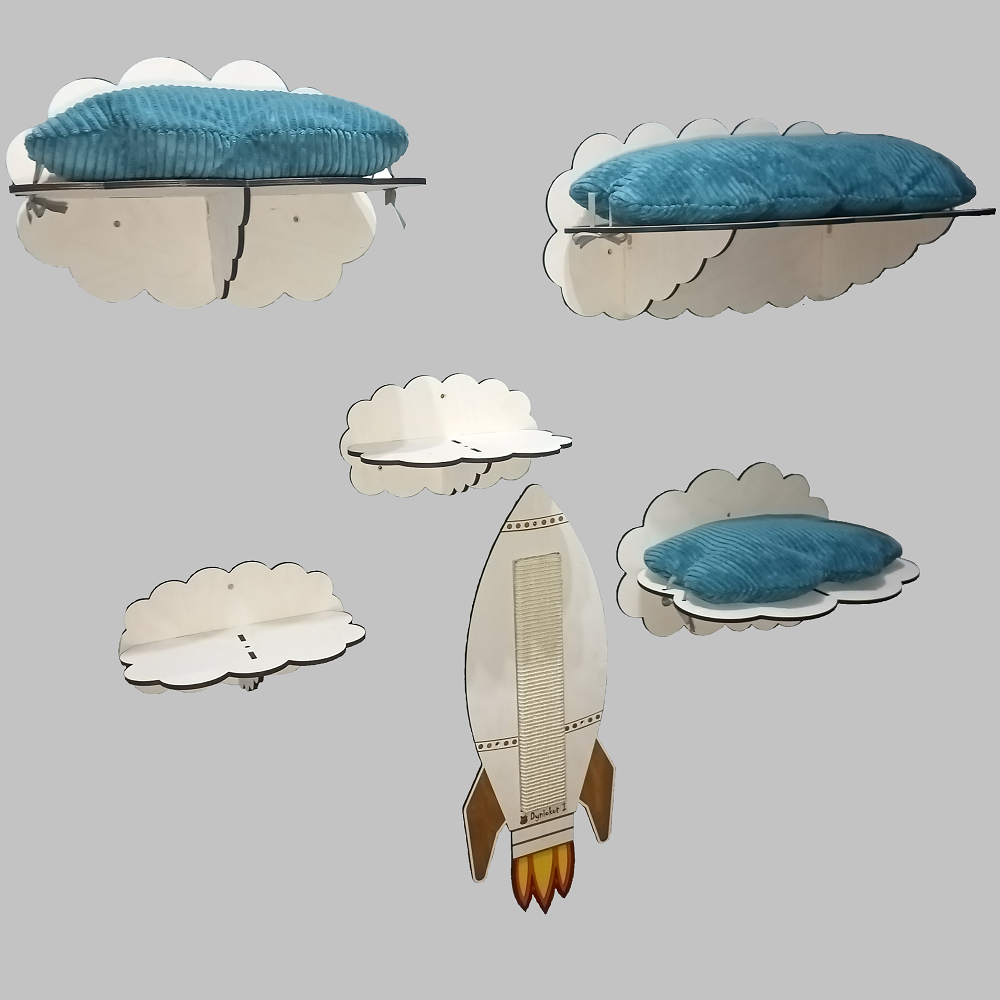 Kosmiczna Kociostrada to zestaw stylistycznie dopasowanych do siebie elementów. Dzięki modułowej konstrukcji, możesz konfigurować ilość półek i drapaków, dopasowując je do potrzeb swojego kota oraz aranżacji wnętrza.